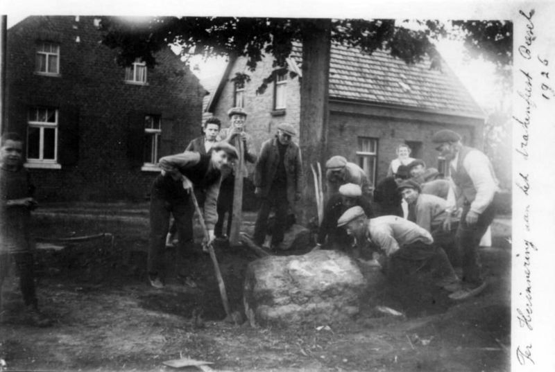 Op het oude marktplein wordt de zware drakensteen voor het draaksteken opgegraven.