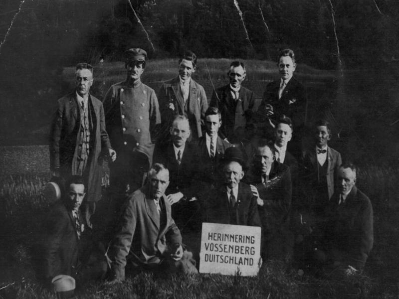 Van links naar rechts: Bovenste rij: W. Muller, Fransman (Buschauffeur), P. de Vlieger, J. Mobers, Hannes Gommans, tweede rij, Willem Gortz, Thei Veldman Hari Reynders, H. van der Velden Onderste rij: Peter Wolters, Adriaan van Eyck, Rein Rovers