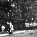 St. Lambertusprocessie met voorop de misdienaars met het kruis waarna het Trommel en fluiterkorps St Barbara volgde