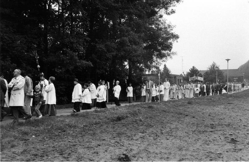 St. Lambertusprocessie met leden van het kerkkoor en de misdienaars