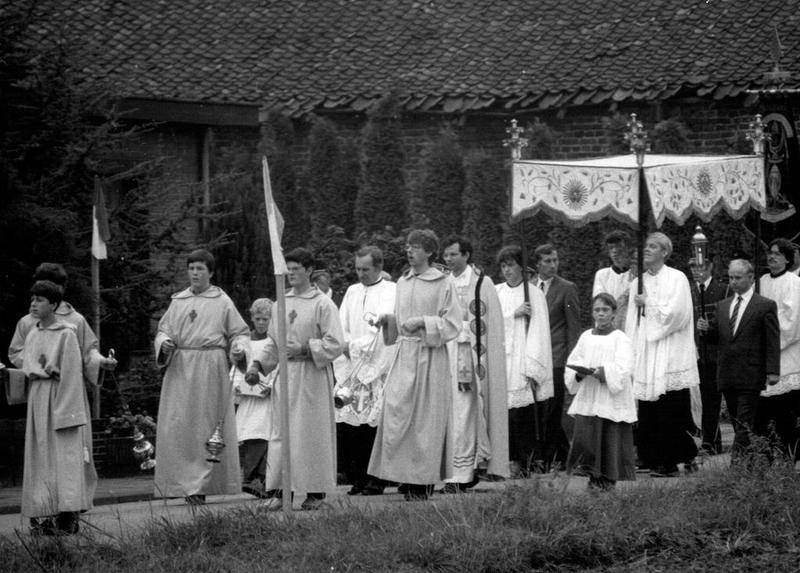 Kapelaan Dohmen, koster Wouter van de Avoort. emeritus-pastoor Geraets