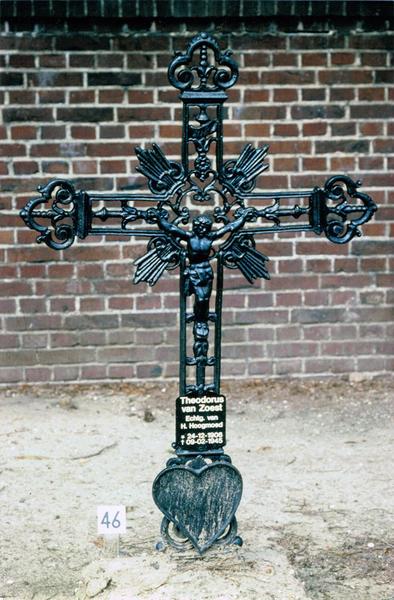 Grafmonument: Kruisbeeld, gegoten uit ijzer. Waarschijnlijk hergebruikt volgens Guus Rusing (Stichting Terebinth). Het kruis dateert waarschijnlijk van voor 1940. Plaatje is wel nieuw. Graf nummer C46. Theodorus van Zoest * 24-12-1906; +9-2-1945. Ech