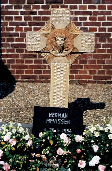 Grafmonument, kruis uit keramiek gemaakt bij Teeuwen. Ontwerp en uitvoering Matthieu Oehlen.
