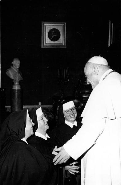 Zuster Gemma Janssen (links naast de paus) op audiëntie bij Paus Johannes XXIII