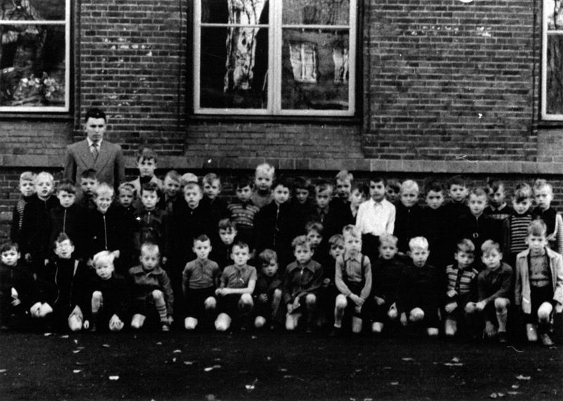 Klassenfoto n.a.v het 25 jarig bestaan van de St.Lambertusschool met Meester Heemels