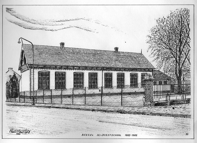 Een pentekening van L.Schrijvers voorstellende de St.Jozefschool