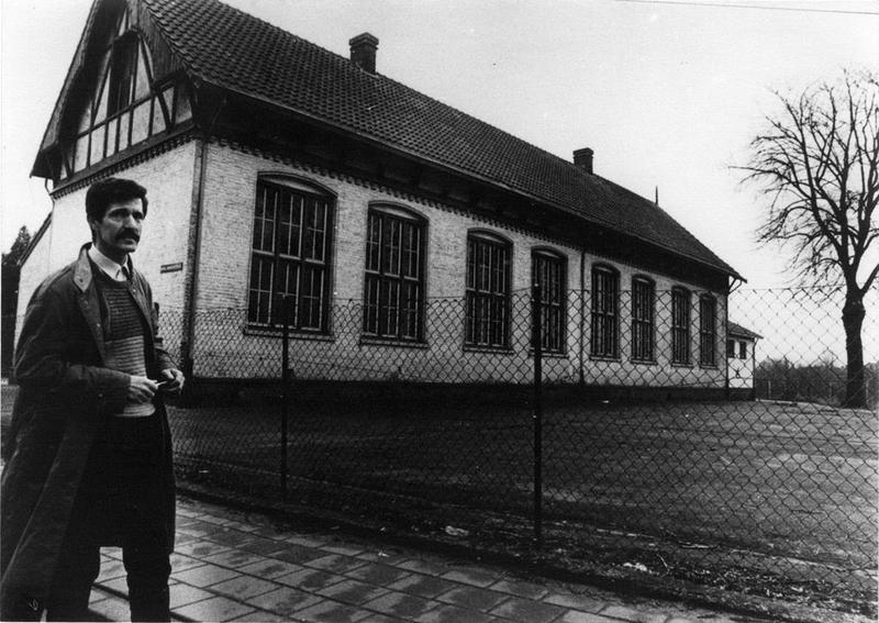 Architect Slabbers bij de oude St.Jozefschool tijdens de verbouwing naar woonhuizen.