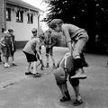 De kinderen doen oude spelletjes tijdens de feestdag ter ere van het 100 jarig bestaan van de St.Jozefschool
