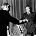 Voorzitter Sloesen van Harmonie "Kunst na Arbeid" en wethouder Scholte