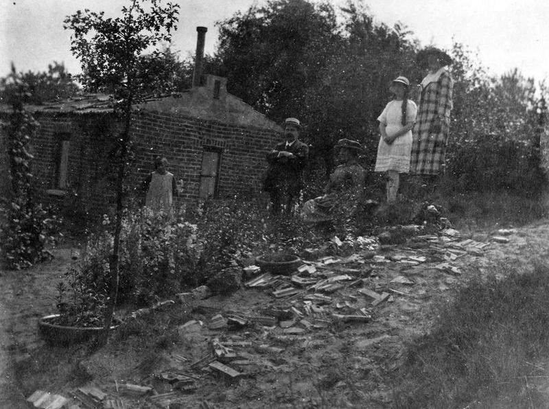"Wullem van de Debbes" bij Blomen. Hij had een huisje op het veldje van Schinderspark. Rechts de familie Caris