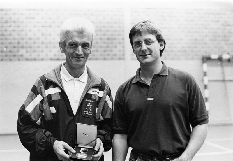 Zitvolleyballer Herman Ravier met zijn medaille gewonnen bij de Olympische spelen in Seoul