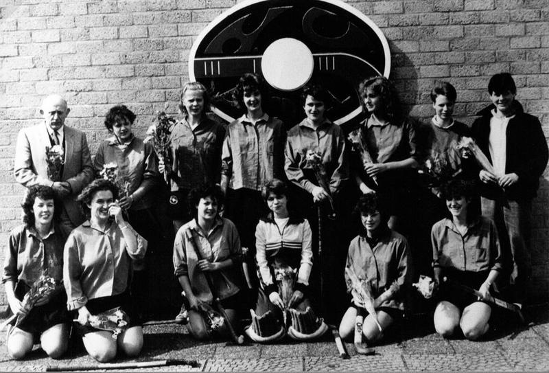 De dames van Hockeyclub Bösdael speelt in de derde klasse. Ze staan hier voor het clubgebouw van de vereniging.