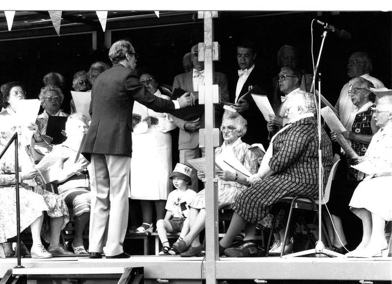 Het Ouderen Koor "Zanglust" tijdens een optreden op de Klinkermarkt