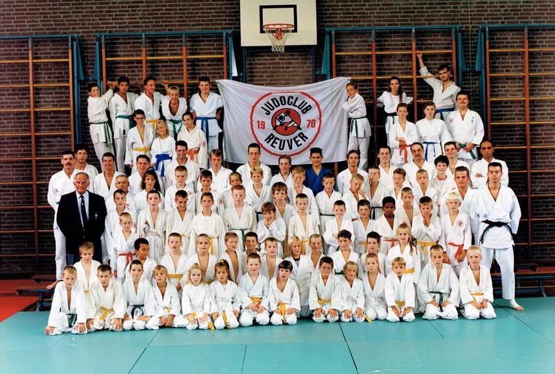 Groepsfoto van Judoclub Reuver ter ere van haar 25 jarig bestaan