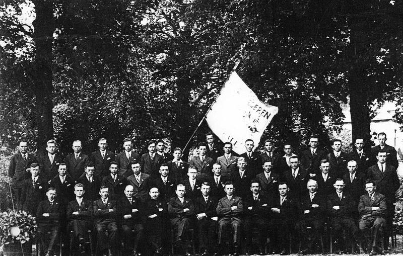 Van link naar rechts Zittend: 1 Tinus Janssen 2 Lei Slabbers 3 Frits Simons 4 Wulm Bergs 5 Kapelaan Muller 6 Gerard Meerts 7 Sjeng Peeters 8 Har Heldens 9 Meester Thijssen 10 Deckers 11 Sef Joosten 12 Toon Luttels 13 Teun Bergs 2e rij 1 Sef Hendrix 2 Sef Reinders 3 Leo Peeters 4 Toon Reinders 5 J. Niessen 6 Pierre Thijssen 7 Jac Nijssen 8 Louis Heldens 9 Jan de Vlieger 10 Wiel Reinders 11 Kuper 12 Baer Evers 13 G. Janssen 3e rij 1 Gerard Simons 2 Chris Slabbers 3 Jan Evers 4 Handrie Vestjens 5 Jo Helden 6 ?? 7 Bongers 8 Chris Reinders 9 Jan Joosten 10 Jan Meerts 11 Jan Slabbers 12 Giel van de Broek 13 Handrie Hawinkels 14 Leo Reinders 15 Sjang Reinders
