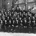 De Koninklijke Harmonie St. Cecilia bij haar 75 jarig bestaan. Links de Lambertuskerk