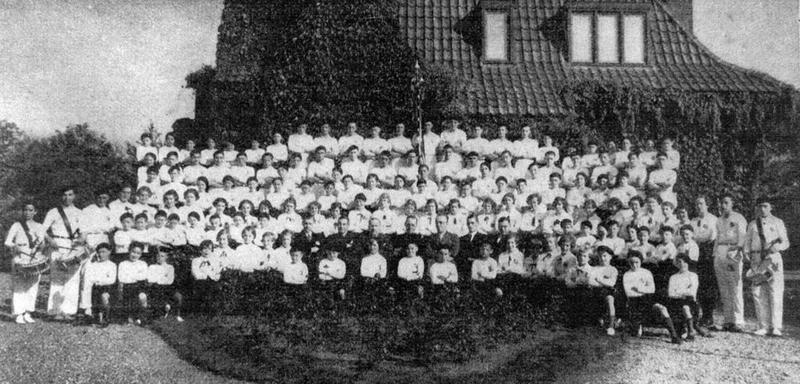 De Gymnastiek vereniging Sparta tijdens het afscheid van de zeereerwaarde Hr Terstappen die werd benoemd tot pastoor van Boukoul.
