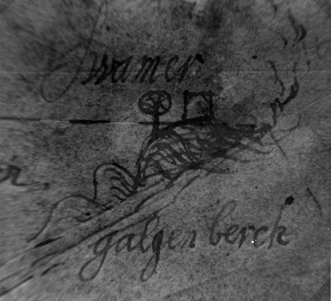 Oude landkaart met vermelding Swamer Galgenberch (terechtstellingsplaats van Swalmen). ca 1700