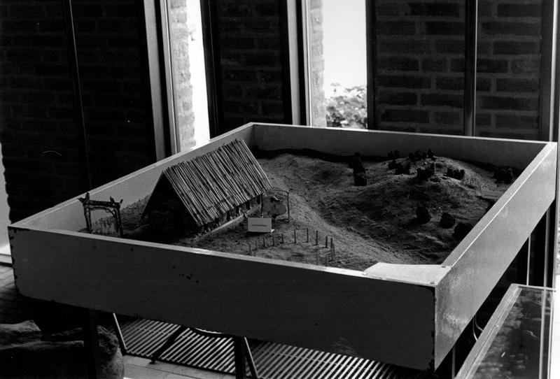 Hier een maquette van een woning in de steentijd.