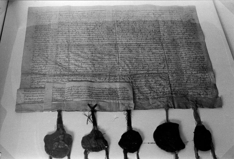 De oudste akte (1275) waarin Beesel vermeld wordt tijdens de door de Archeologische Werkgroep Beesel georganiseerde tentoonstelling "Bieslo aen die Maese " in de hal van het gemeentehuis.