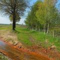 De oude loop (rechts langs de bomen) en de nieuwe loop van de Schellekensbeek