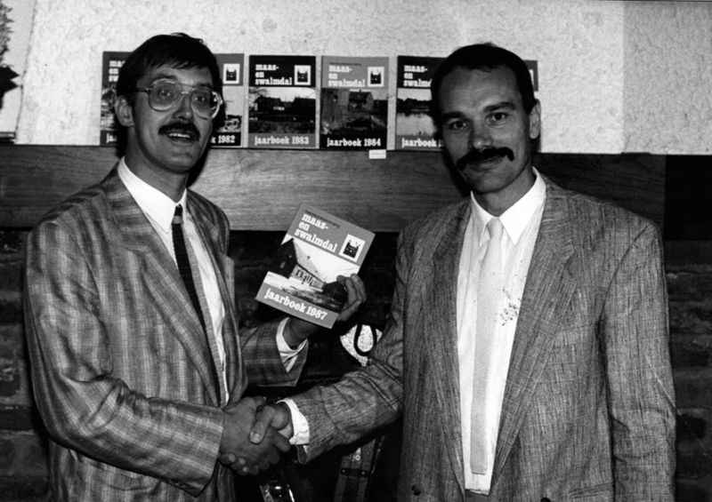 De heer Stoepker ontvangt het jaarboek 1987 uit handen van Wiel Luys