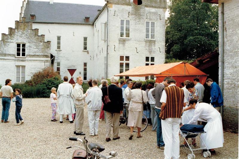 De open monumentendag werd uiteraard ook door leden van de heemkundevereniging bezocht. Hier wordt het kasteel Nieuwenbroeck bewonderd.
