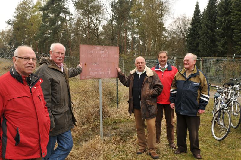De gidsen van het voormalig Brits munitiedepot zijn van links naar rechts