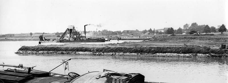 Een baggermolen in de Maas bij Asselt