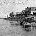 Gezicht op de Maas en Veerhuis bij Asselt. Het witte huis is het Gebrouwhuis.