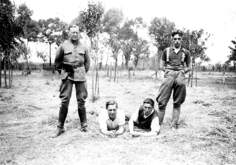 Toon Roelofs (liggend rechts) uit Offenbeek met naast hem liggend Smeets uit Swalmen poseert met twee collega's.