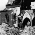 De zwaar beschadigde St. Lambertuskerk in Swalmen