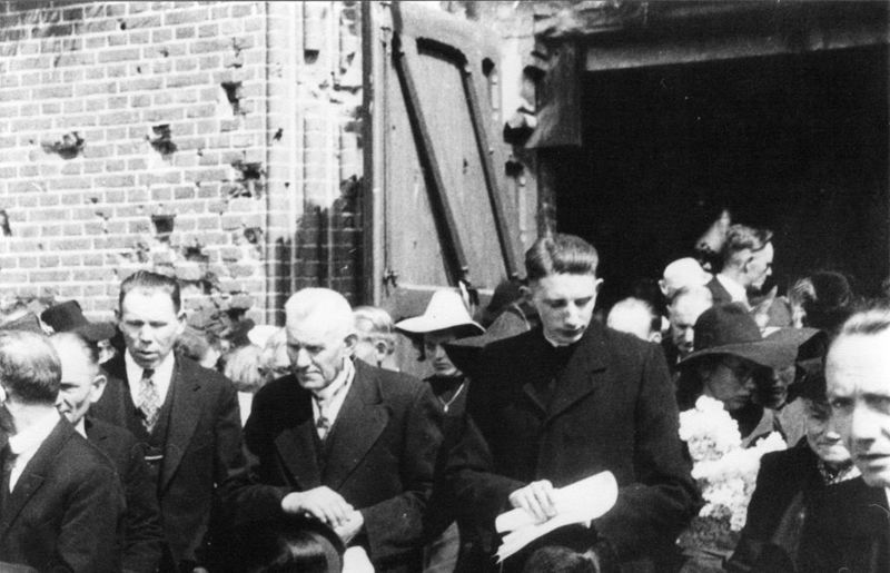 Bij de ingang van de St. Lambertuskerk staan van links naar rechts