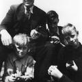 Rechts naast de koster staat Theo Janssen en helemaal rechts Pierre Janssen.