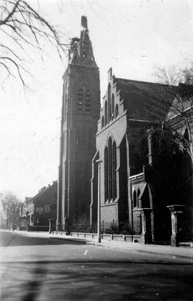 De st. Lambertuskerk in Reuver direct na de oorlog