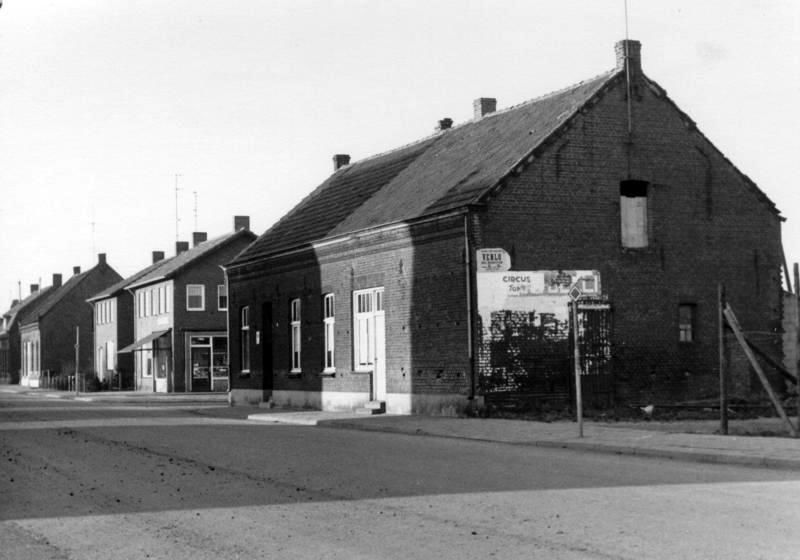 In het midden het pand Killaars dat werd afgebroken om plaats te maken voor het kerkplein. Links zien we slagerij Franssen.