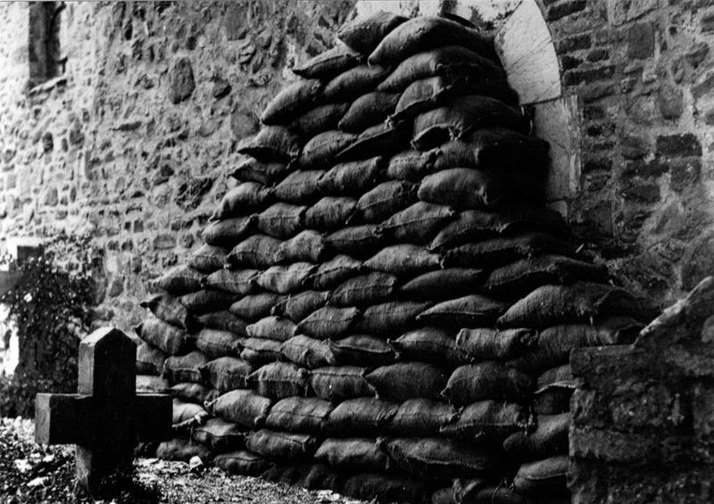 Het Noormannenpoortje in Asselt dicht gestapeld met zandzakken tijdens de mobilisatie in 1939