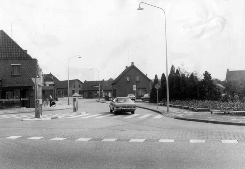 We zien de kruising Keulseweg - Rijksweg met links de winkel "Ons Huis" en het pand van de vroegere Rabobank.