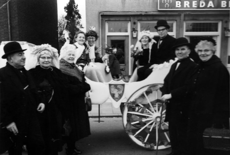 Bruidspaar Koen en Mien Franssen voor café de Koupmman.