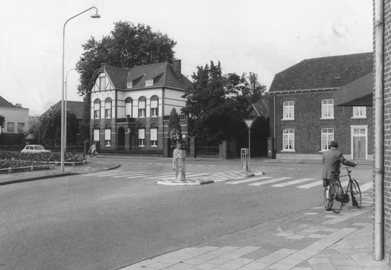 De kruising Keulseweg -Rijksweg met in het midden pand Laumans en rechts daarvan het pand verfwaren- en Japanlakfabriek van de familie van de Avoort.