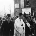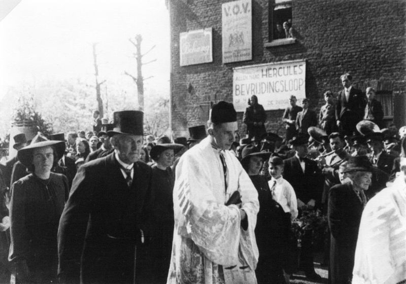 Aankomst bij de St. Lambertuskerk van pater Frans Rutten voor zijn eerste heilige mis.