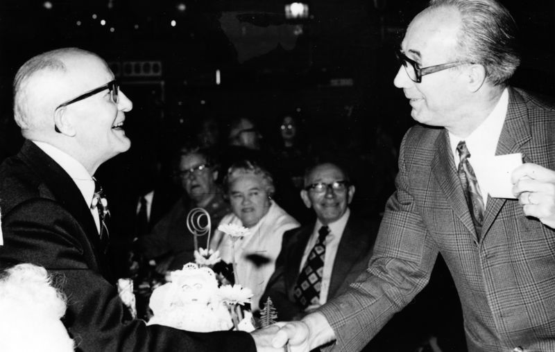 Dreeske Ottenheim wordt gefeliciteerd door Wiel Naus.
