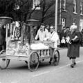 Carnavalsoptocht. Links Mien en Jo Peeters van de post