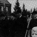 In oktober 1953 werd Jules Ceijssens geïnstalleerd als pastoor van de Reuverse St. Lambertus parochie. Hier een foto van de feeststoet op de Pastoor Vranckenlaan. Met herdershopje is pastoor Geijssens. Geheel links kapelaan P. Delhoofen en naast hem pastoor Gerrits van Beesel. Pastoor Ceijssens was slechts twee jaar parochieherder in Reuver. Na een tragisch ongeval (met zijn brommer) overleed hij in 1955.