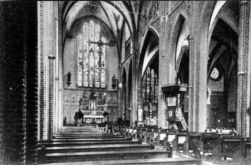 Het interieur van de St. Lambertuskerk in de twintiger jaren.