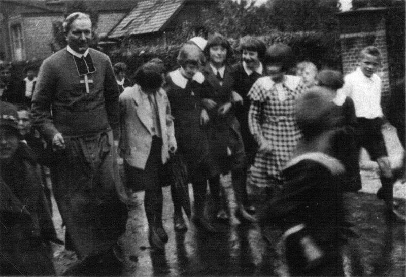 Tijdens het 100 jarig bestaan van de St. Lambertus parochie was Mgr. Lammens te gast in Reuver. Hier bij de fabriek van Teeuwen op de Keulseweg