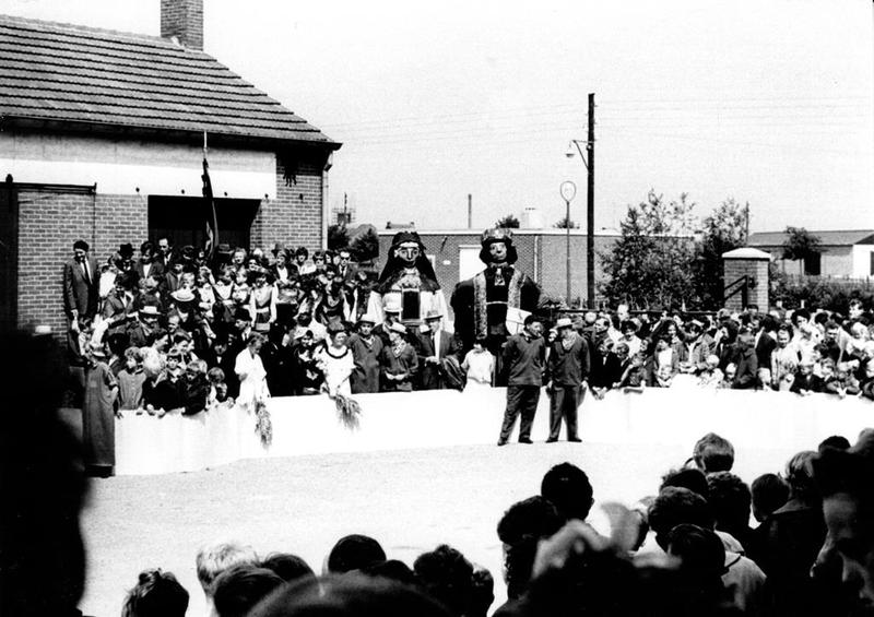 Voor de nieuwbouw van de Fatimakerk werden heel wat acties georganiseerd. Hier een voorstelling voor het gebouw van de oude Boerenbond.