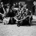Foto van een groep mensen tijdens de zogenaamde Thuisfront-tentoonstelling vóór het Piusgebouw