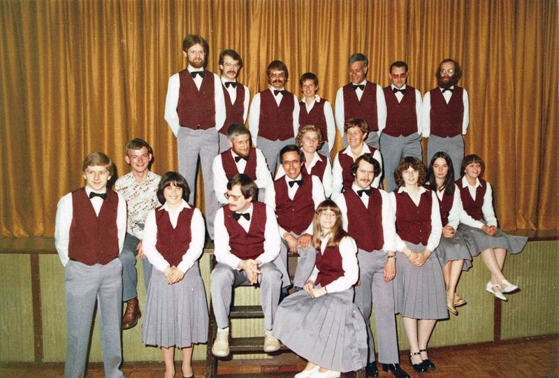 Van links naar rechts: eerste rij : Sjak Huberts - Stef Backus - Toos Huberts - Har Geraedts - Leon Schrijvers - Jan Geerlings - Gerry Geerlings/Hendriks - José Geraedts/Ramaekers - Riet Aspers - Kuipers - Heinen - Juffrouw Luus Schoeber - Lia Jenneskens tweede rij: Heinen - Charel Jentjens - Jos Linssen - Lies Linssen / Aspers - Aspers - Lei Faassen - Paul Teeuwen