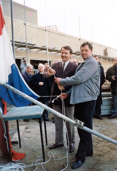 Wim Janssen (l , voorzitter), zorgde er in de aanwezigheid van een groot aantal genodigden dat de driekleur in top ging.